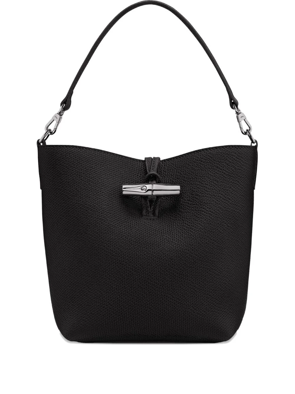 small Le Roseau bucket bag Highlights - Black - Toggle fastening - Detachable top handle - Main compartment Made in France Composition Outer: Leather 100% Lining: Recycled Polyester 100% SIZE & FIT Measurement DEPTH 4.33 in(11 cm) HEIGHT 8.26 in(21 cm) WIDTH 6.69 in(17 cm)