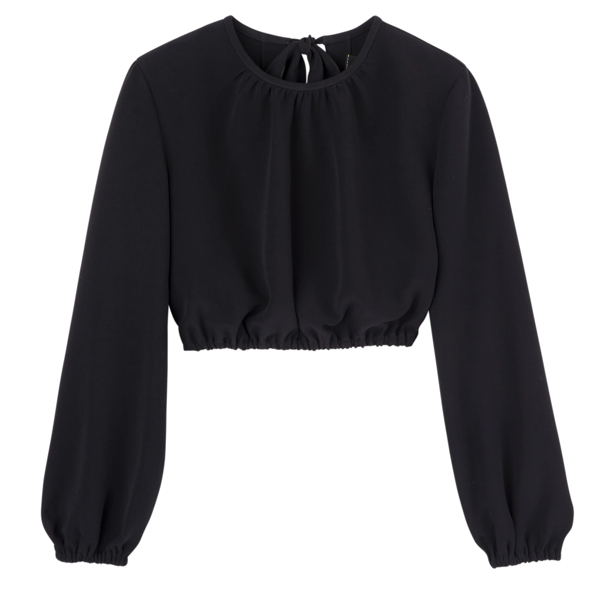 Product Details Reference : 61565PGV0011TS Material : 53% Viscose 47% Acetate Collar : Round collar Sleeves : Long sleeves Closing : Buttons and drawstring SIZE & FIT Mannequin informations : The model is 5' 11'' and is wearing a size 4