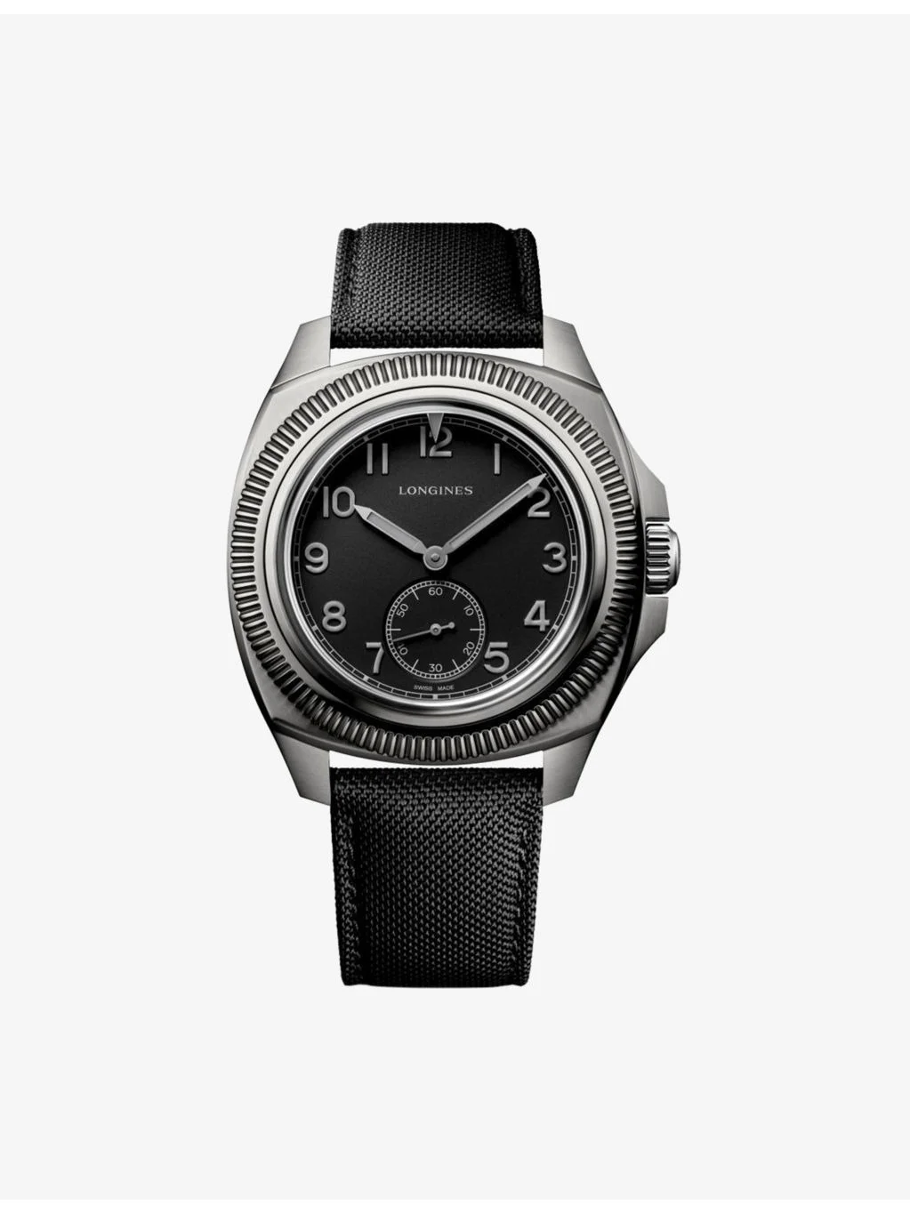 PRODUCT DETAILS - Longines titanium automatic watch - Case material: 100% titanium - Strap material: 100% woven - Crown material: 100% titanium - Style Number: L2.838.1.53.2 - Movement type: automatic - Fastening: buckle - Dial: round, black matt - Hands: PVD Grey polished hands - Index: engraved Arabic numerals - Glass: scratch-resistant sapphire crystal, with several layers of anti-reflective coating on both sides - Calibre: L893 - Technical details: Chronometer Officially Certified, Magnetic resistant, Swiss Super-LumiNova® - Stones: N/A - Case thickness: 13.30mm - Case diameter: 43.00mm - Water resistance: 10 bar / 10 atm / 100m / 330ft - Made in Switzerland - Warranty: 5 years, card and COSC card to be included with return Ref: R04472673