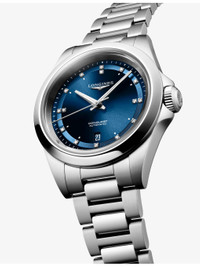 PRODUCT DETAILS - Longines stainless-steel and 0.037ct diamond automatic watch - Case material: 100% stainless steel - Strap material: 100% stainless steel - Crown material: 100% stainless steel - Style Number: L3.320.4.97.6 - Movement type: automatic - Fastening: triple safety folding clasp and push-piece opening mechanism - Dial: Sunray blue - Hands: Silvered polished hands - Index: diamond indexes - Glass: scratch-resistant sapphire crystal, with several layers of anti-reflective coating on both sides - Calibre: L592 - Date window: yes - Technical details: date, Magnetic Resistant, Swiss Super-LumiNova® - Stones: 15 Wesselton VS-SI diamonds - Carat weight: 0.037ct total - Case thickness: 9.70mm - Case diameter: 30.00mm - Water resistance: 10 bar / 10 atm / 100m / 330ft - Made in Switzerland - Warranty: 5 years, warranty card and diamond certificate to be included with return. Ref: R04473131