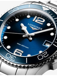 PRODUCT DETAILS - Longines stainless-steel quartz watch - Case material: 100% stainless steel - Strap material: 100% stainless steel - Crown: 100% stainless steel - Bezel: 100% ceramic - Style Number: L3.370.4.96.6 - Movement type: quartz - Fastening: double safety folding clasp - Dial: sunray blue - Index: Applied Arabic numerals and indexes - Hands: silvered polished hands - Glass: scratch-resistant sapphire crystal, with several layers of anti-reflective coating on both sides - Calibre: L844 - Case thickness: 11.35 mm - Case diameter: 32.00 mm - Technical details: date window - Water resistance: Water-resistant to 30 bar (300 m) - Made in: Switzerland - Warranty: 2 years - Returns: warranty card to be included with return Ref: R04473894