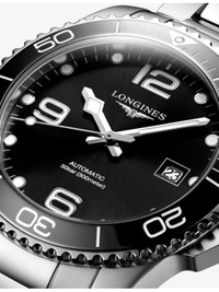 PRODUCT DETAILS - Longines stainless-steel automatic watch - Case material: 100% stainless steel - Strap material: 100% stainless steel - Crown material: 100% stainless steel - Bezel: 100% ceramic - Style Number: L3.781.4.56.6 - Movement type: automatic - Fastening: double safety folding clasp - Dial: round, Sunray black - Hands: Silvered polished hands - Index: applied Arabic numerals and indexes - Glass: scratch-resistant sapphire crystal, with several layers of anti-reflective coating on both sides - Calibre: L888 - Date window: yes - Technical details: date, Swiss Super-LumiNova® - Case thickness: 11.90mm - Case diameter: 41.00mm - Water resistance: 30 bar / 30 atm / 300m / 984ft - Made in Switzerland - Returns: 5 years, warranty card to be included with return. Ref: R04473124