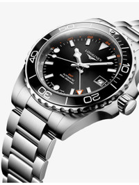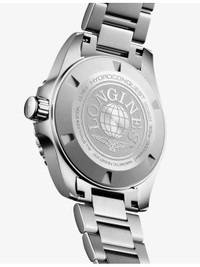PRODUCT DETAILS - Longines stainless-steel automatic watch - Case material: 100% stainless steel - Strap material: 100% stainless steel - Crown material: 100% stainless steel - Bezel: 100% ceramic - Style Number: L3.790.4.96.6 - Movement type: automatic - Fastening: double security folding clasp with micro adjustment system - Dial: round, Sunray black - Hands: Silvered polished hands - Index: applied indexes - Glass: scratch-resistant sapphire crystal, with several layers of anti-reflective coating on both sides - Calibre: L844 - Date window: yes - Technical details: GMT and Date, Magnetic Resistant, Swiss Super-LumiNova® - Case thickness: 12.90mm - Case diameter: 41.00mm - Water resistance: 30 bar / 30 atm / 300m / 984ft - Made in Switzerland - Returns: 5 years, warranty card to be included with return. Ref: R04473115