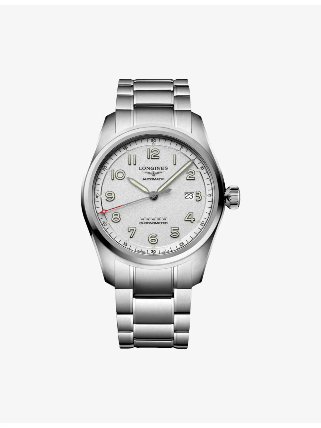 PRODUCT DETAILS - Longines stainless-steel automatic watch - Case material: 100% stainless steel - Strap material: 100% stainless steel - Crown: 100% stainless steel - Bezel: 100% stainless steel - Style Number: L3.811.4.73.6 - Movement type: automatic - Fastening: triple safety folding clasp and push-piece opening mechanism - Dial: Silver - Index: applied Arabic numerals - Hands: Black hands - Glass: scratch-resistant sapphire crystal, with several layers of anti-reflective coating on both sides - Calibre: L888.4 - Case thickness: 12.20 mm - Case diameter: 42.00 mm - Technical details: COSC Certified and date - Water resistance: Water-resistant to 10 bar (100 m) - Made in: Switzerland - Warranty: 5 years - Returns: Warranty card and COSC Certificate to be included with return Ref: R04473879