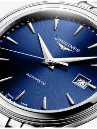 PRODUCT DETAILS - Longines stainless-steel automatic watch - Case material: 100% stainless steel - Strap material: 100% stainless steel - Crown: 100% stainless steel - Bezel: 100% stainless steel - Style Number: L4.984.4.98.6 - Movement type: automatic - Fastening: triple safety folding clasp and push-piece opening mechanism - Dial: Sunray blue - Index: applied indexes - Hands: silvered polished hands - Glass: scratch-resistant sapphire crystal, with several layers of anti-reflective coating on the underside - Calibre: L888 - Case thickness: 8.70 mm - Case diameter: 40.00 mm - Technical details: date window - Water resistance: water-resistant to 3 bar (30 m) - Made in: Switzerland - Warranty: 5 years - Returns: Warranty card to be included with return Ref: R04525242