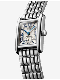 PRODUCT DETAILS - Longines stainless-steel quartz watch - Case material: 100% stainless steel - Strap material: 100% stainless steel - Crown material: 100% stainless steel - Style Number: L5.200.4.71.6 - Movement type: quartz - Fastening: triple safety folding clasp and push-piece opening mechanism - Dial: rectangular, silver flinque - Hands: blued steel hands - Index: painted Roman numerals and indexes - Glass: scratch-resistant sapphire crystal, with several layers of anti-reflective coating on both sides - Calibre: L178 - Stones: N/A - Case thickness: 6.75mm - Case dimensions: 21.50 x 29.00mm - Water resistance: 3 bar / 3 atm / 30m / 100ft - Made in Switzerland - Warranty: 2 years, warranty card to be included with return. Ref: R04473143