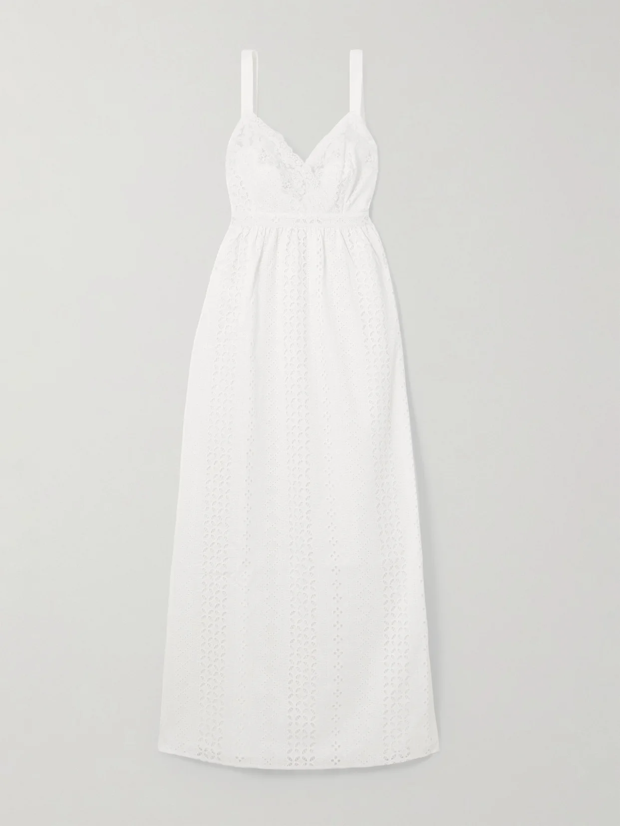 Edith Gathered Lace-trimmed Broderie Anglaise Cotton Maxi Dress