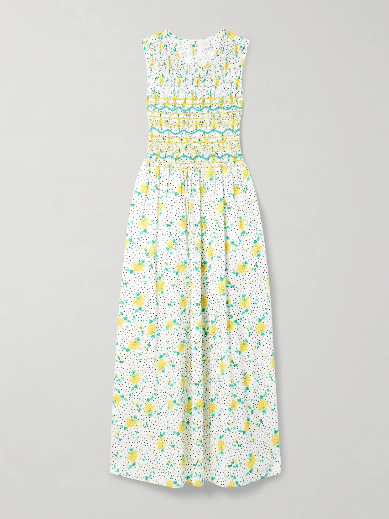 Gioia Smocked Printed Cotton-voile Midi Dress