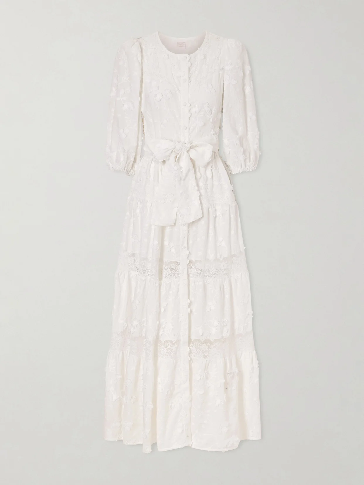 Poppi Belted Tiered Lace-trimmed Broderie Anglaise Cotton Maxi Dress