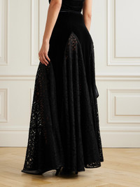 Velvet-paneled Lace Midi Skirt