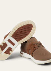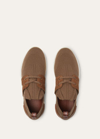 Sneaker in knitted Wish® wool crafted using an exclusive, very complex technique. Feather-light and super-comfortable, ideal for leisure time and lounging, and perfect with casual looks in the city. Product details Wish® is an exceptionally fine wool from selected Merino sheep bred in Australia and New ZealandThe upper is machine-knitted just like a sweater, then joined to the ultra-light technical soleThe sides of the shoe are finished with water-repellent suede Kummel-coloured loop on the heel with the Loro Piana logoWhite sole in ultra-light rubber with kummel-coloured inserts and tread featuring the Loro Piana initials Composition: 95% virgin wool 5% polyesterTrim: 100% suede goatskin Model wears an IT 40 Model measures: height 5′ 10″/ 179cm, bust 30.3″/ 77cm, waist 23.2″/ 59cm, hips 34.3″/ 87cm, shoes 15.4″/ 39cm. Made in Italy Product code: FAI7759
