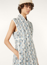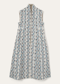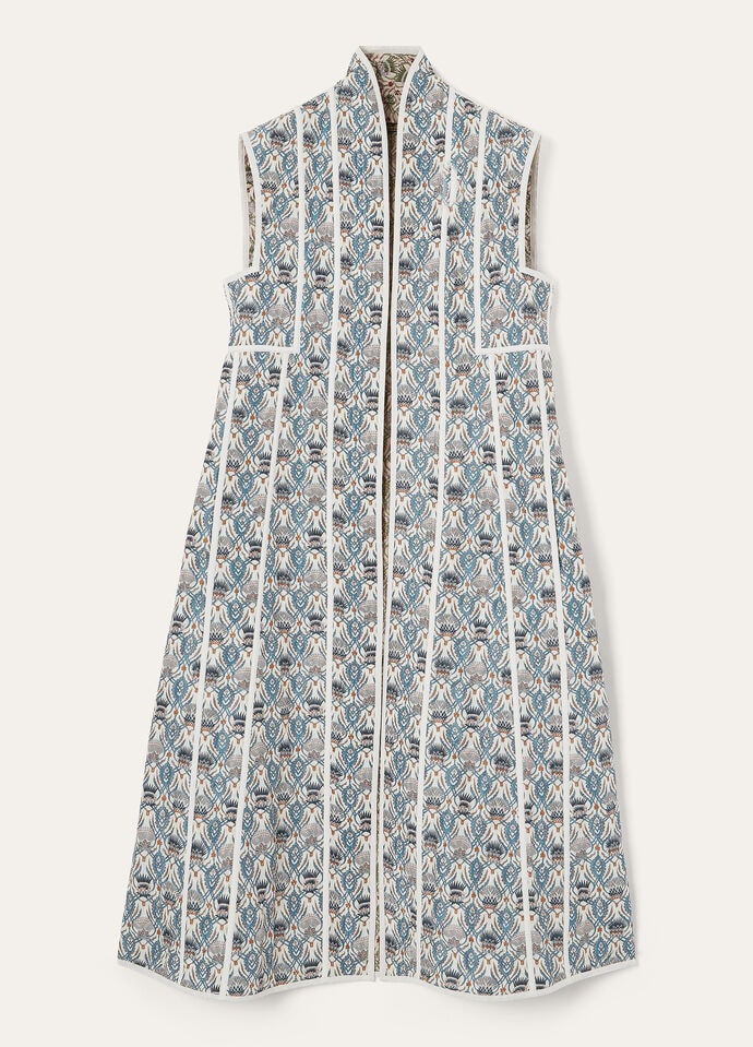 Intricately detailed with a repeating thistle motif on both sides, the reversible Alev vest exudes elegant charm. It is cut for a longline silhouette and crafted in lightweight silk shantung that has been finished with quilting and topstitching for a touch of body. The borders are trimmed in a solid-colored hue. Product details Turned-up collar Thin straps at the front Side entry pockets on one side; patch pockets on the reverse Diamond quilting Contrast-color bands all over Reversible Cardo Veneziano print Regular fit Composition: 100% Silk Model wears an IT 40 Model measures: height 5′ 10″/ 179cm, bust 30.3″/ 77cm, waist 23.2″/ 59cm, hips 34.3″/ 87cm, shoes 15.4″/ 39cm. Made in Italy Product code: FAP0055