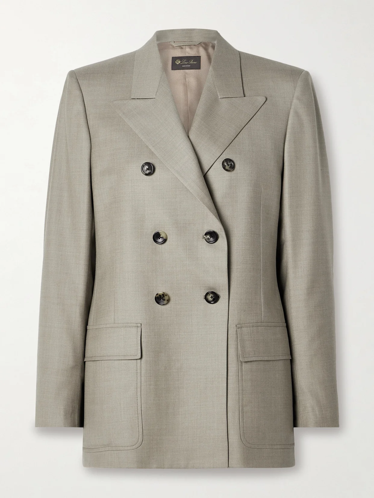 Loro Piana's 'Ananda' blazer is a style you'll have in your closet for years. Tailored from wool-twill in a classic double-breasted shape, it has peak lapels and padded shoulders. The seamed, fold-over pockets are a unique detail that show the brand's thoughtful craftsmanship.