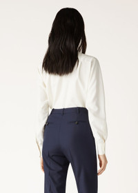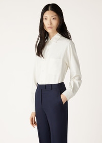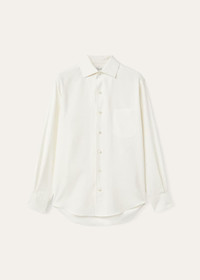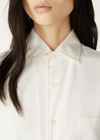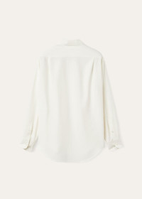 The iconic Andre shirt is a reflection of its namesake menswear garment, with the same distinctive styling details. Meticulously crafted from Japon silk, this shirt exudes a uniquely fluid feel. Casual yet extremely refined, it is the definitive shirt for leisure-time dressing. Product details Collar with facings Breast pocket Four-holed buttons in Australian mother of pearl Mouche with the Loro Piana logo Pleats at the back Composition: 100% Silk Model wears an IT 36 Model measures: height 5′ 10″/ 179cm, bust 31.1″/ 79cm, waist 24.8″/ 63cm, hips 35.0″/ 89cm. Made in Italy Product code: FAO0500