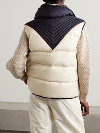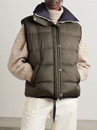 Loro Piana's 'Andry' vest reverses between a two-toned and solid side, so you can switch up the look depending on your preference. Packed with insulating down, it's made from durable shell detailed with chevron quilting and has a relaxed collar that zips into a funnel neck in order to shield you from cool winds. Keep your keys or ski pass secured in one of the pockets. Size & Fit - Fits true to size, take your normal size - Intended for a relaxed fit and is sized for layering - Designed to be worn multiple ways - Quilted, non-stretchy fabric - Model is 175cm/ 5'9" and is wearing an IT 40 Details & Care - Multicolored shell - Snap and two-way zip fastening through front - 100% polyamide; padding1: 100% polyester; padding2: 90% down, 10% feathers (Goose) - Hand wash - Designer color: Dried Oregano/ White Amchoor/ Blue Navy