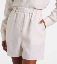 Every Loro Piana design combines the best of Italian craftsmanship with the finest raw materials. Made from pure linen, the Angelo Bermuda shorts are primed for effortless warm-weather looks. This pair is completed with side pockets and an elasticated waistband for added comfort. Product Details - Material: 100% linen - Care instructions: machine wash at 30 degrees - Made in Italy - Designer color name: Light Beach - Item color: beige - Pockets: side slit pockets - Elasticated waistband - Item number: P01011782 Size & Fit - True to size - Elasticated waist - Non-stretchy fabric - Wide-leg - High-waisted - The model seen in the picture is 178cm-5'10" and wearing a size IT 40
