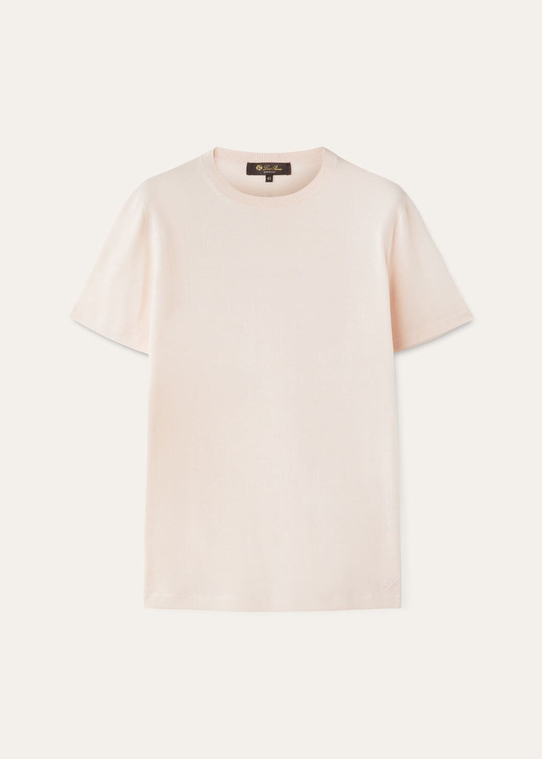 This minimalist, crew-neck T-shirt embodies the characteristic light and color of the Ligurian Riviera. Crafted from naturally lightweight cotton yarn sourced from certified organic farmland, it is defined by a full-bodied texture and a unique, color-enhancing sheen. Perfect to wear in summertime complete looks. Product details Ribbed collar and English roped shoulders Monochromatic, embroidered cursive LP logo at the hem Composition: 100% Cotton Model wears an IT 36 Model measures: height 5' 9.3"/ 176cm, bust 32.3"/ 82cm, waist 24.8"/ 63cm, hips 35.0"/ 89cm. Made in Italy Product Code: FAM7984