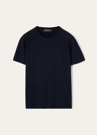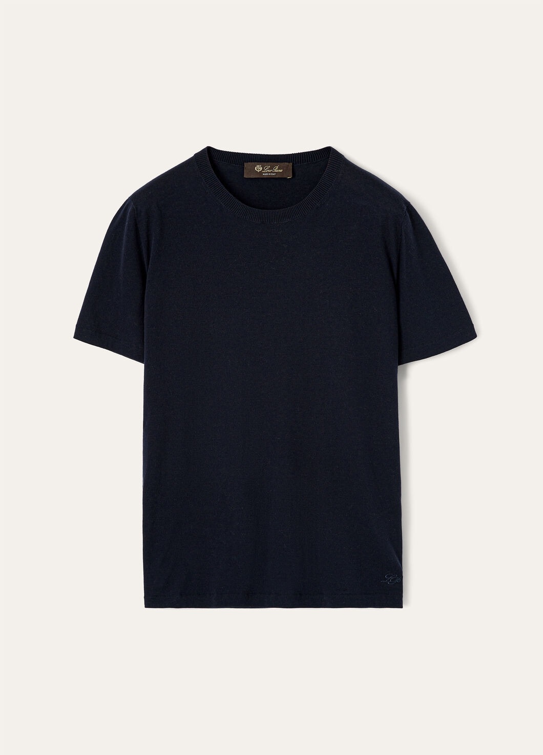 This minimalist, crewneck T-shirt embodies the characteristic light and color of the Ligurian Riviera. Crafted from naturally lightweight cotton yarn sourced from certified organic farmland, it is defined by a full-bodied texture and a unique, color-enhancing sheen. Perfect to wear in summertime complete looks. Product details Ribbed collar and English roped shoulders Monochromatic, embroidered cursive LP logo at the hemComposition: 100% Cotton Made in Italy Product code: FAM7984