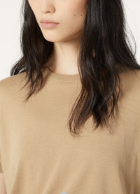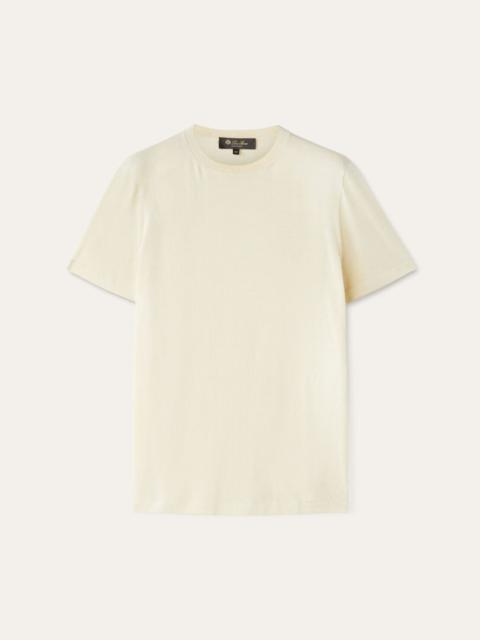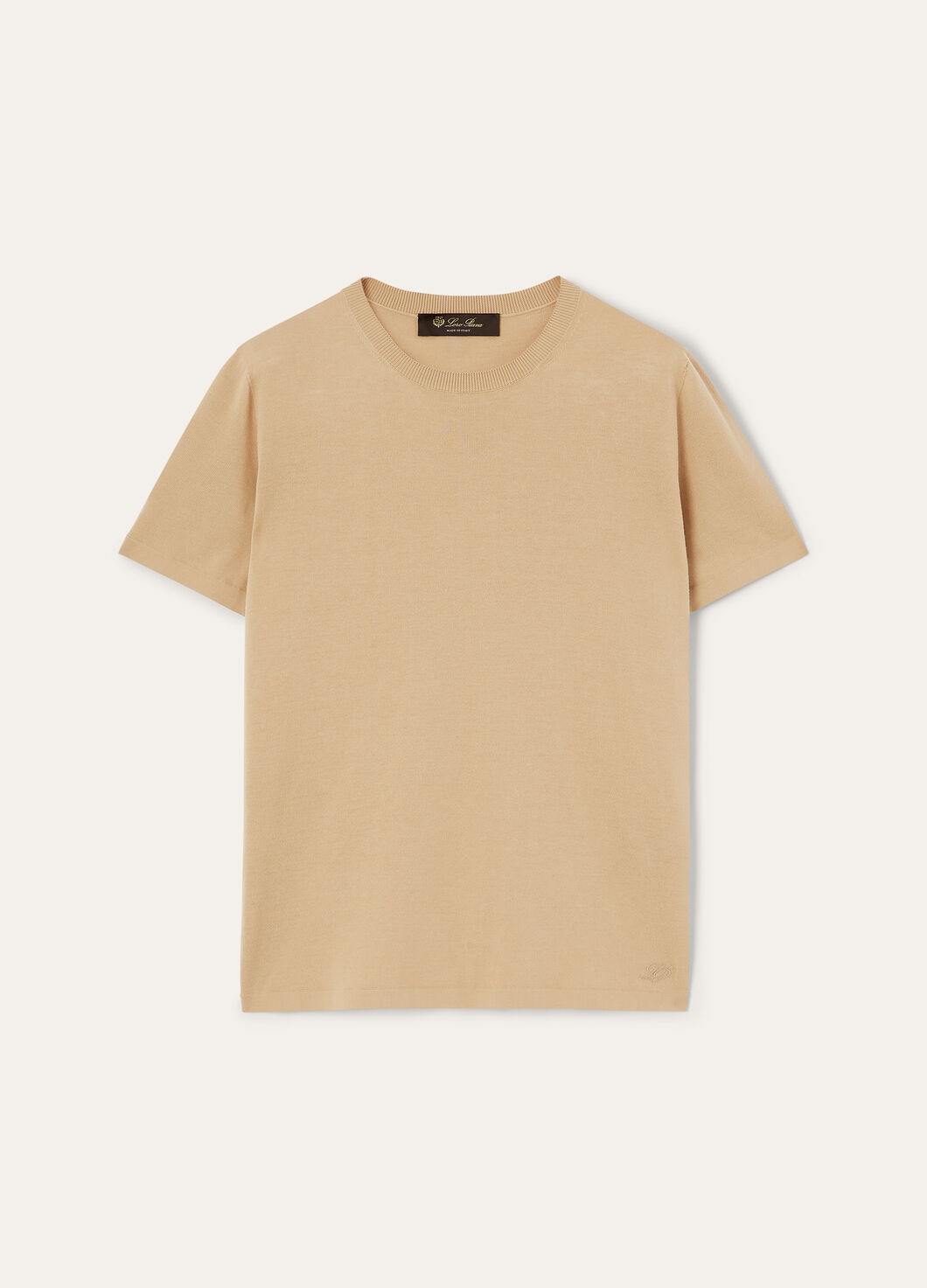 This minimalist, crewneck T-shirt embodies the characteristic light and color of the Ligurian Riviera. Crafted from naturally lightweight cotton yarn sourced from certified organic farmland, it is defined by a full-bodied texture and a unique, color-enhancing sheen. Perfect to wear in summertime complete looks. Product details Ribbed collar and English roped shoulders Monochromatic, embroidered cursive LP logo at the hemComposition: 100% Cotton Made in Italy Product code: FAM7984