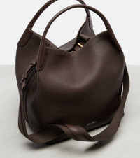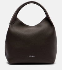 Slouchy yet also structured, the Bale bucket bag from Loro Piana has a leather exterior and a suede lining. The design has two top handles and a removable shoulder strap for added versatility. Product Details - Material: calf leather - Lining: suede - Made in Italy - Designer color name: Dark Chocolate Locor - Item color: brown - Top handles, Detachable, adjustable shoulder strap - Closure: toggle fastening - Internal details: single compartment - Detachable zipped pouch - Includes: dust bag - Item number: P01075756 Size & Fit - Height 27cm-10.5" - Width 25cm-10" - Depth 19cm-7.5" - Length of handles 27cm-10.5" - Length shoulder strap 85cm-33.5" - Clutch height 13cm-5" - Clutch width 19.5cm-7.5"