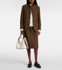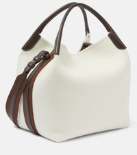 Product Details - Material: fabric - Lining: unlined - Made in Italy - Designer color name: White/Dark Chocolate Licorice - Closure: toggle fastening - Top handles, Detachable shoulder strap - Trim: leather - Includes: dust bag, box - Item number: P00851303 Size & Fit - Height 27cm-10.5" - Width 25cm-10" - Depth 19cm-7.5" - Length of handles 27cm-10.5" - Length shoulder strap 87cm-34.5"