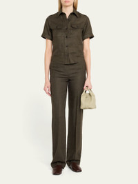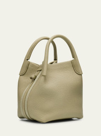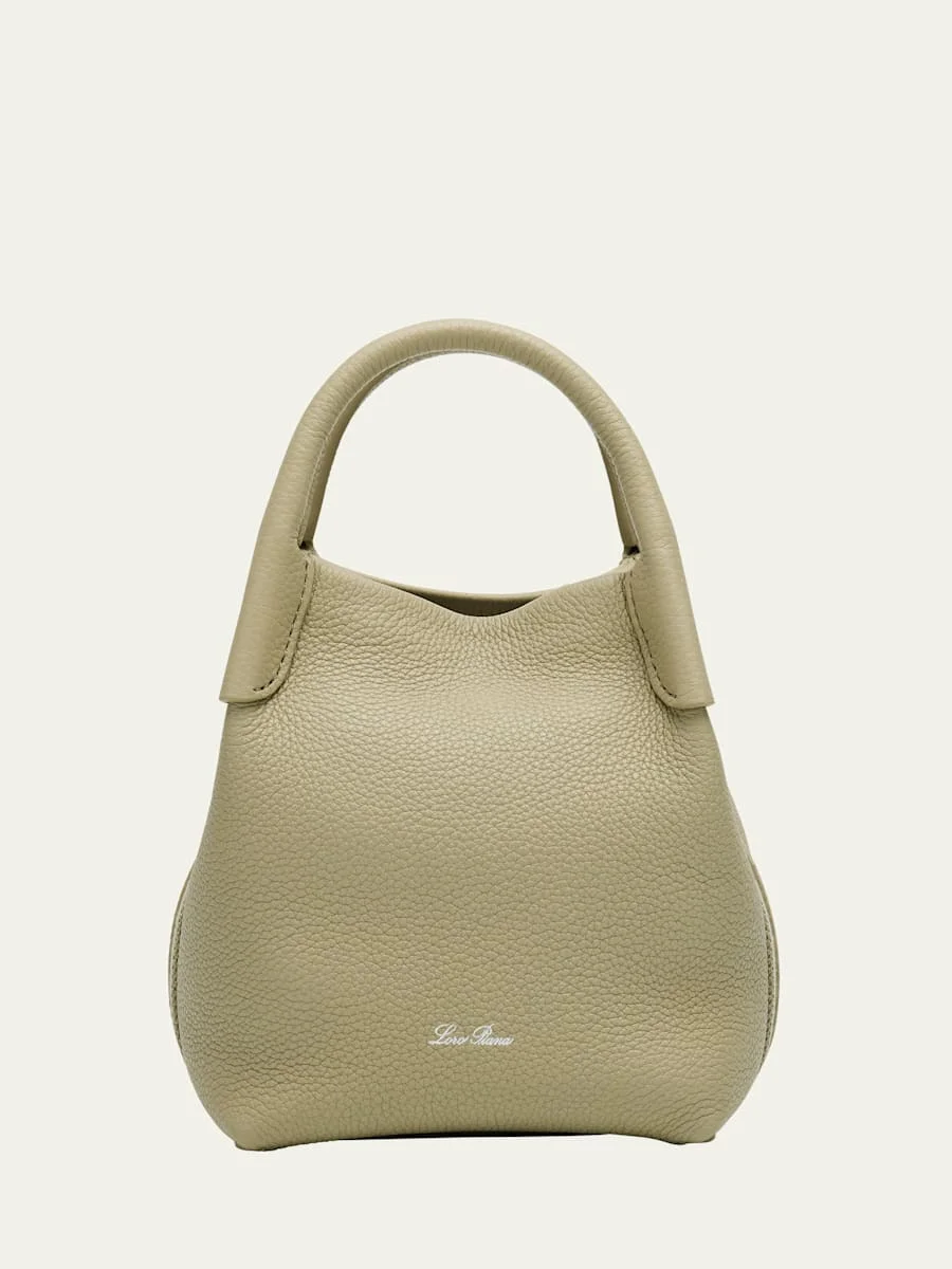 Loro Piana "Bale" crossbody bag in grained leather Rolled top handles Detachable, adjustable web crossbody strap Can be worn as a top handle or crossbody bag Open top with extended chain strap closure Approx. 9.1"H x 6.3"W x 5.5"D Wipe clean Made in Italy