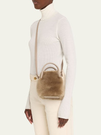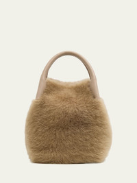 This Loro Piana "Bale" bucket top handle bag is crafted in plush dyed shearling (Spain) for additional coziness to the iconic silhouette Rolled top handles Detachable, adjustable crossbody strap Can be worn as a top handle or crossbody bag Open top with internal toggle closure Lining: Suede Trim: Leather Approx. 6.3"H x 5.2"W x 5.2"D Wipe clean Made in Italy Online Inquiries: BGS21_V6SU4| Store Inquiries: #5468190