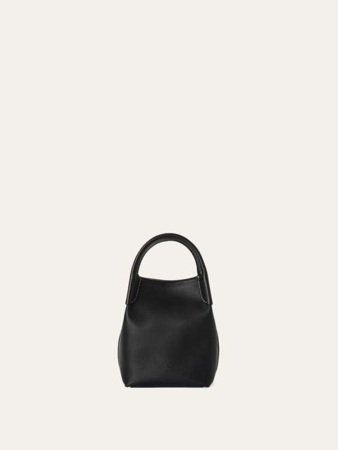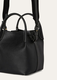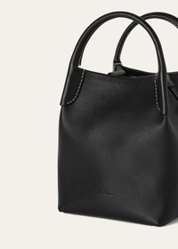 Loro Piana’s distinctive heritage is embodied in the Bale Bag — a new icon of laidback, timeless elegance. Its name and cube-shaped silhouette is inspired by cashmere storage bales, strongly evoking Loro Piana’s artisanal expertise. This handcrafted style is made from luxury calfskin that is exceptionally soft, thanks to meticulously selected materials and exclusive techniques used for tanning, dying and finishing, evoking the glove-making tradition. The micro version of the Bale Bag combines elegance and tradition in a minimalist, modern design. Product details Size: Micro 13 x 13 x 16 cm (5.2" x 5.2" x 6.3") Handle Length: 8 cm Strap Length: 57 cm. A detachable, cotton-and-leather shoulder strap wraps around the entire bag like a ringThe shoulder strap features two holes, so its length can be adjusted, allowing the bag to be carried by hand, over the shoulder or as a crossbody styleBejeweled metal inside closure with Antique Silver finishLightly padded and lined in soft suedeContrasting-colored, embossed Loro Piana logo on the frontOutside base lined in leather Composition: 100% CalfskinSpecific Features: Lining: 100% Suede Made in Italy Product code: FAN0807
