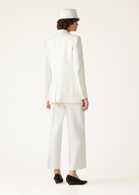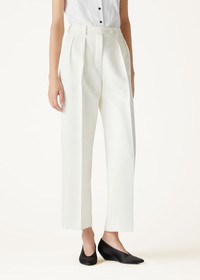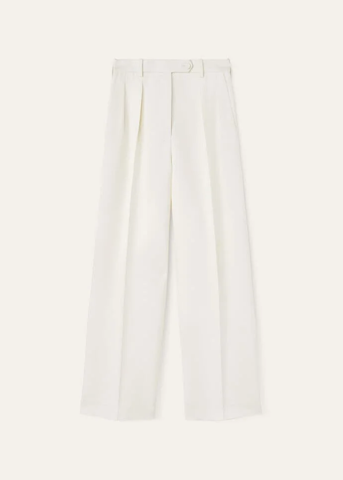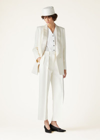 In the soft glow of the evening, the Bart pants emerge as a vision of refinement untouched by the passing of time. Crafted from a wool and silk blend, these straight-cut pants with a slight kick flare offer the perfect balance of structure and fluidity. The pressed crease and subtle pleats at the top add a touch of volume and sophistication, while the fabric-covered button at the waist ensures a seamless finish. Product details Pockets lined in plain weave silk Composition: 83% Wool, 17% Silk Model wears an IT 36 Model measures: height 5′ 10″/ 179cm, bust 30.3″/ 77cm, waist 23.2″/ 59cm, hips 34.3″/ 87cm. Product code: FAO4608