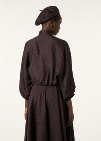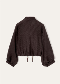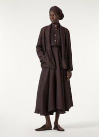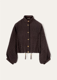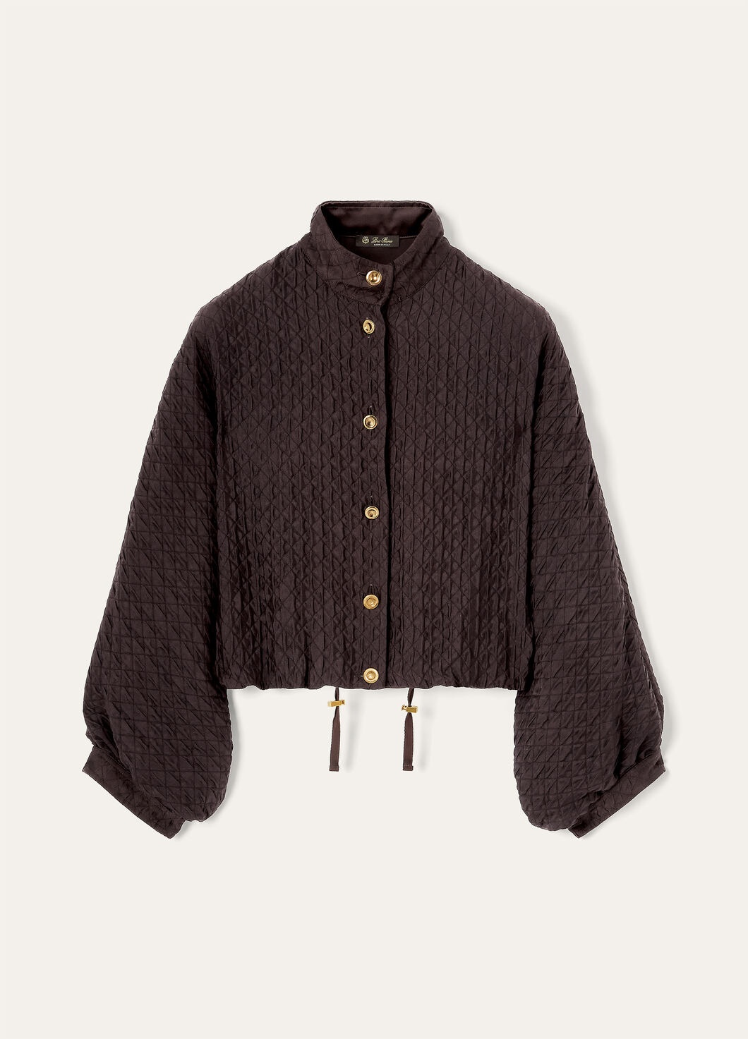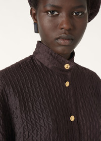 Inspired by sporty bomber styles, the cropped Benedetta jacket is shaped with a generously proportioned body featuring batwing sleeves and tapered cuffs, for an elevated take on a modern outerwear essential. It is made using two layers of fluid silk cloquet that are joined at various points during the weaving process, casting a distinctively textured surface to enhance the diamond-quilted pattern. The hem adjusts with a cotton ribbon to create a cinched look. Product details Guru collar Bat-wing sleeves with cuff Front fastening with metal buttons Diamond quilting Cropped fit Lined in silk Adjustable drawstring at the bottom Composition: 100% Silk Product code: FAP1822