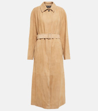 For unmatched quality and timeless elegance, look no further than Loro Piana's Brenner coat. It's made from smooth suede goatskin with luxurious silk lining and trench coat-inspired features, such as raglan sleeves, belted cuffs, and a classic waist belt. - material: 100% goat leather - lining: 100% silk, fully lined - care instructions: specialist clean - side slit pockets - concealed buttoned front - Made in Italy - buttoned sleeves - detachable belt - Designer colour name: Caramel Toffee - Runs large, please see Size & Fit tab size & fit - Fits large to size - we recommend trying one size smaller - Loose fit, comes with belt - Mid-weight material - The model seen in the picture is 178cm-5'10" and wearing a size IT 38