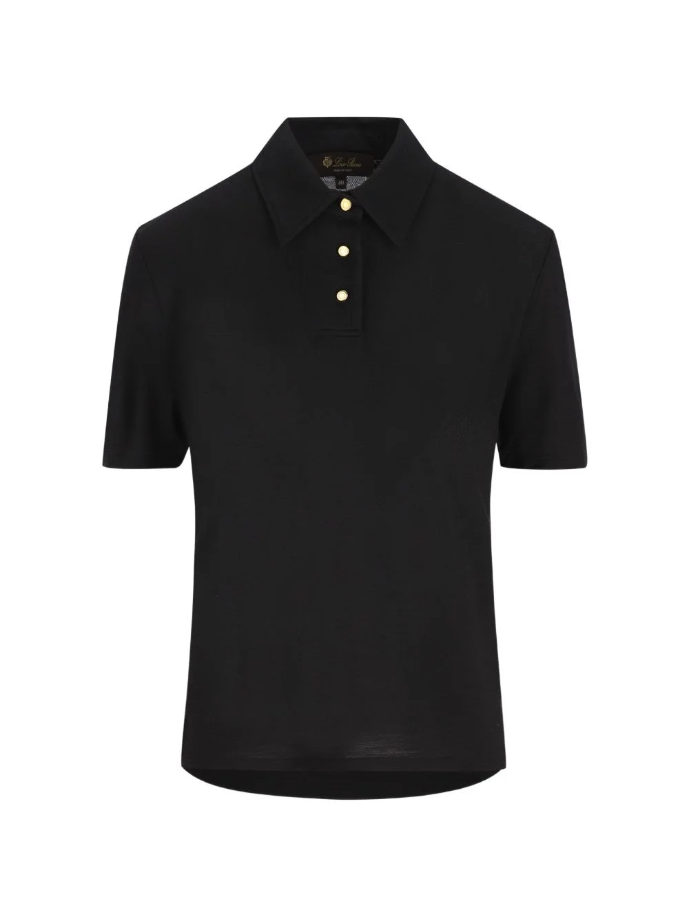 buttoned polo top Highlights - Black - Gold-tone hardware - Polo collar - Short sleeves - Button fastening Made in Italy Composition Virgin Wool 100% Washing instructions Read Manufacturer Guidelines