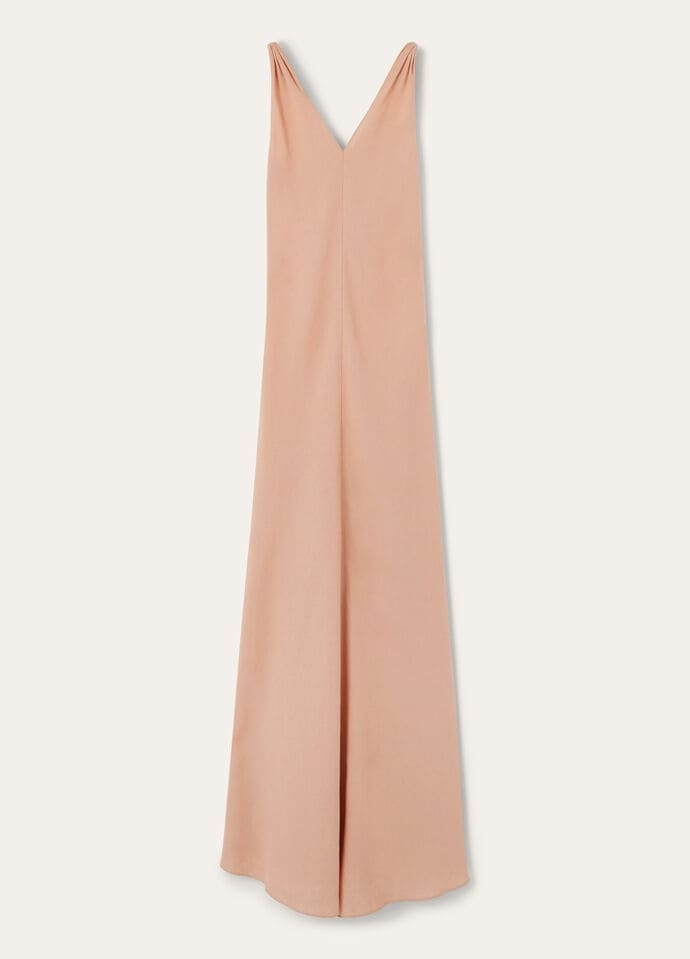 Cut on the bias to a minimalist and graceful line, the Callie dress is an ode to femininity. It is rendered in the finest linen crepe, worked by the masters at Solbiati, which has been part of the Maison since 2013. Wide shoulder straps provide an elegant frame and give way to a fitted bodice and subtly flared skirt. Product details V-neck Flared design Unlined Regular fit Side vents Composition: 100% Linen Model wears an IT 40 Model measures: height 5′ 11″/ 180cm, bust 31.5″/ 80cm, waist 23.6″/ 60cm, hips 35.4″/ 90cm, shoes 16.1″/ 41cm. Made in Italy Product code: FAP0286