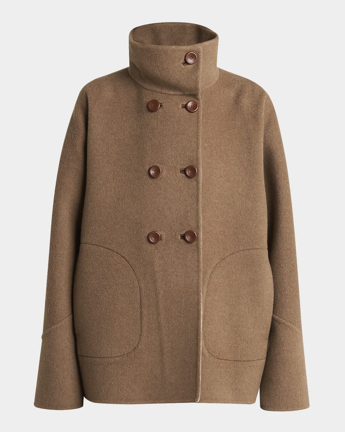 Loro Piana "Camden" peacoat Stand collar; double-breasted front & nbsp; Long sleeves Side-entry pockets Mid-length Oversized fit & nbsp; Cashmere Made in Italy Model is 5 & apos;10"/177cm.