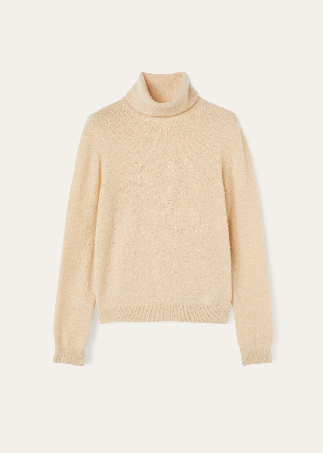 The Cocooning turtleneck envelops you in that rarest of luxuries - the ease of being truly at peace. Showcasing the art of boucle knitting in a regular-fit silhouette, this turtleneck pullover promises cozy warmth and comfort with a sleek, minimalist aesthetic. Ideal for casual and tailored cool-weather looks. Product details Ribbed hem and cuffs Visible drop stitches Composition: 60% Cashmere, 40% Silk Model wears an IT 36 Model measures: height 5′ 9″/ 175cm, bust 28.7″/ 73cm, waist 22.4″/ 57cm, hips 35.0″/ 89cm. Made in Italy Product code: FAO4506