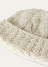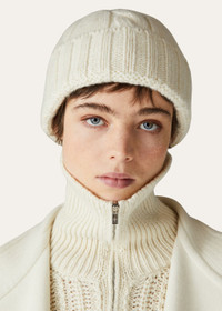 This beanie is enhanced with a sumptuous weave that features flat ribbing and a cable knit for a three-dimensional appearance. It is crafted from knit Coarsehair® baby cashmere yarn with a fluffy, full-bodied texture that is pleasantly soft to the touch. When worn with gloves, it creates a warm accessory set, providing perfect comfort on the coldest days of the year. Product details Ribbed brim Composition: 100% Baby Cashmere Made in Italy Product Code: FAN2739
