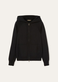 Casual bomber in baby cashmere styled with a relaxed cut. A light-weight piece that is perfect teamed with the Merano trouser to create a refined tracksuit for leisure time. Product details Rare, supersoft baby cashmere is obtained solely from the underfleece of Hircus goat kids Zip fastening Rib-knit hood, cuffs, hem and zip edging Raglan sleeves highlighted with English rib-knit motif Composition: 100% cashmere Model wears an IT 40 Model measures: height 5′ 11″/ 180cm, bust 31.9″/ 81cm, waist 22.8″/ 58cm, hips 35.0″/ 89cm. Made in Italy Product code: FAG3599