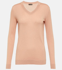 Every Loro Piana design combines the best of Italian craftsmanship with the finest raw materials. Case in point, this elegant sweater is knitted from pure cashmere and cut into a V-neck silhouette. Product Details - Material: 100% cashmere - Care instructions: dry clean - Made in Italy - Designer color name: Khaki - Item color: pink - Collar: V-neck - Cuff: ribbed - Hem: ribbed - Item number: P00703953 Size & Fit - True to size - Straight fit - Falls to the hip - The model seen in the picture is 178cm-5'10" and wearing a size IT 40