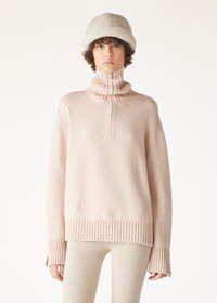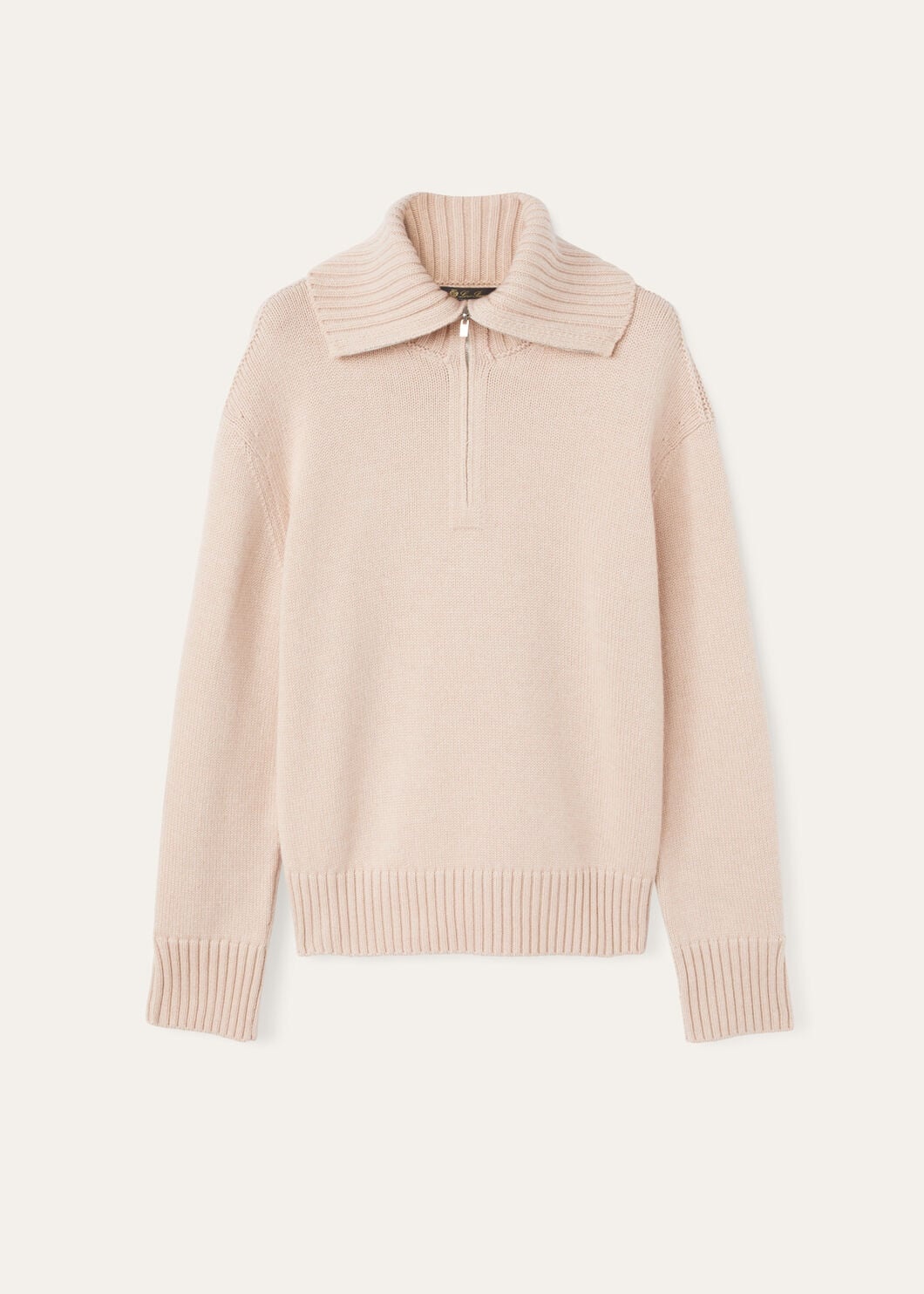 This lightweight, half-zip sweater is meticulously crafted from delicate, fine baby cashmere fibers using unique techniques, evoking Loro Piana’s artisanal expertise and the surreal peacefulness of New Zealand’s limitless horizons. It can be worn anywhere, thanks to a versatile, comfortable, boxy cut. Product details Wide, rounded neckline Set-in sleeves Ribbed collar, cuffs and hem Composition: 100% Baby Cashmere Model wears an IT L Model measures: height 5′ 10″/ 179cm, bust 30.3″/ 77cm, waist 23.2″/ 59cm, hips 34.3″/ 87cm. Made in Italy Product code: FAN3805