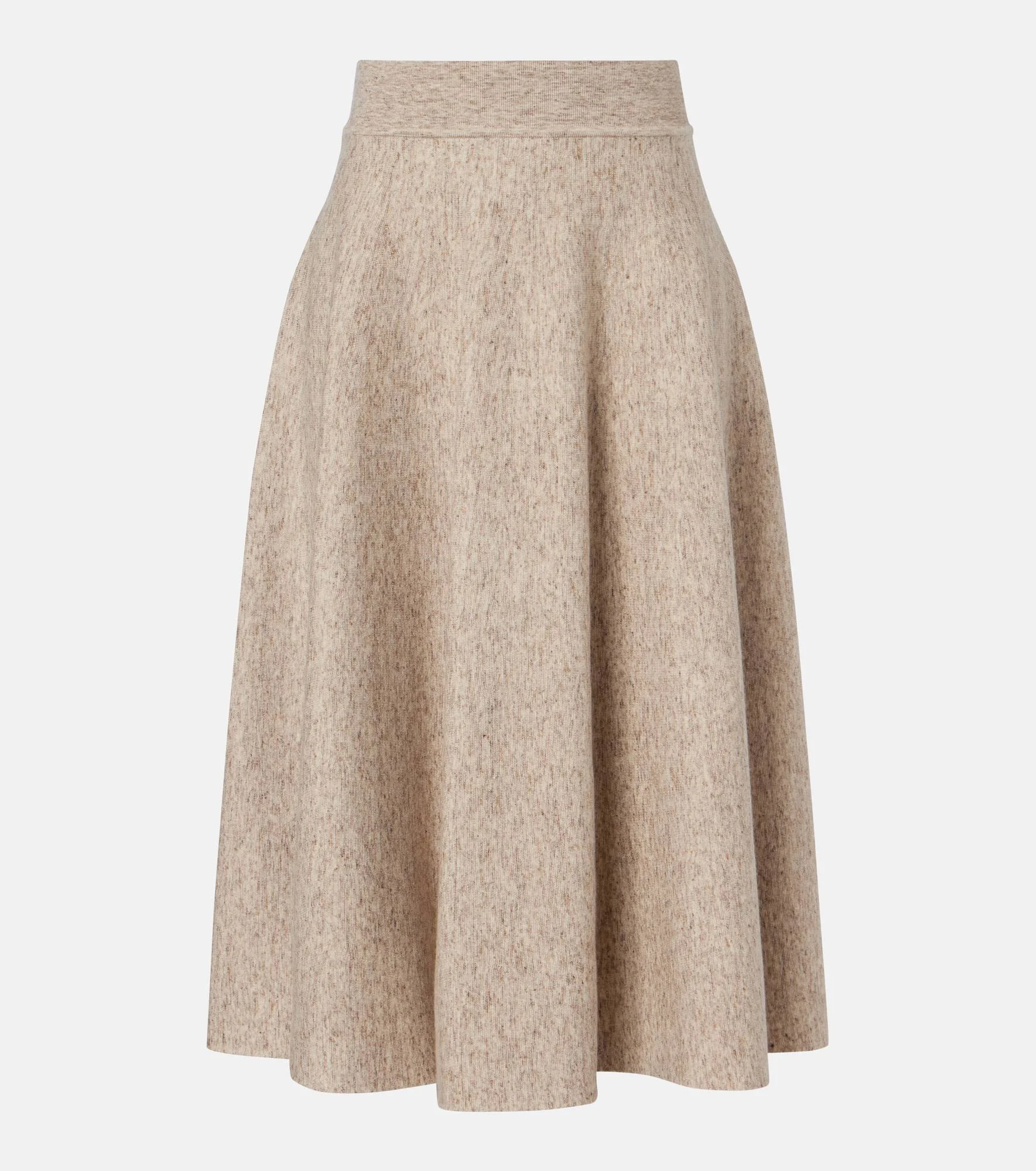 Exude timeless elegance in this midi skirt from Loro Piana. The piece is crafted from a soft blend of cashmere, wool, and linen, with an elasticated drawstring waistband. Product Details - Material: 51% cashmere, 40% wool, 9% linen - Care instructions: dry clean - Made in Italy - Color: beige - Designer color name: Quinoa Cream Bianco - Details: 68% cashmere, 14% polyamide, 12% linen, 6% elastane - Elasticated drawstring waist - Item number: P01130392 Size & Fit - True to size - Elasticated waist - Slightly stretchy fabric - The model seen in the picture is 178cm-5'10" and wearing a size XS
