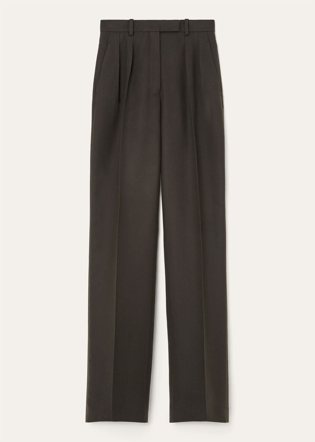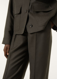 Lending a sense of minimalist elegance, the Chad pants are cast in Loro Piana’s new excellence: Royal Lightness. This exclusive fabric fuses the sumptuousness of cashmere—the finest of its kind, sourced from China and Mongolia—with the exquisite luster and strength of mulberry silk to create a cloth like no other. The straight-leg silhouette is anchored with a lean waistband from which two pleats extend to create soft volume. Product details Mid-rise waist Straight cut Side American pockets and ticket pockets with horn button on the back Zip fastening with button and metal hook Horn button Belt loops Regular fit Unlined Double pleat Composition: 85% Cashmere, 15% Silk Model wears an IT 40 Model measures: height 5′ 11″/ 180cm, bust 28.7″/ 73cm, waist 22.8″/ 58cm, hips 34.3″/ 87cm, shoes 15.7″/ 40cm. Made in Italy Product code: FAP2695