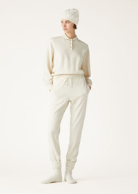 The Cocooning polo sweatshirt envelops you in that rarest of luxuries - the ease of being truly at peace. Crafted from supremely soft jersey cashmere fleece, this relaxed piece offers exquisite warmth with its regular fit, accentuated by dropped shoulders and sleek ribbed trims. Perfect for casual dressing. Product details Ribbed neck, placket, cuffs and hem Horn buttons Composition: 100% Cashmere Model wears an IT L Model measures: height 5′ 10″/ 179cm, bust 32.3″/ 82cm, waist 23.6″/ 60cm, hips 34.6″/ 88cm. Made in Italy Product code: FAO6286
