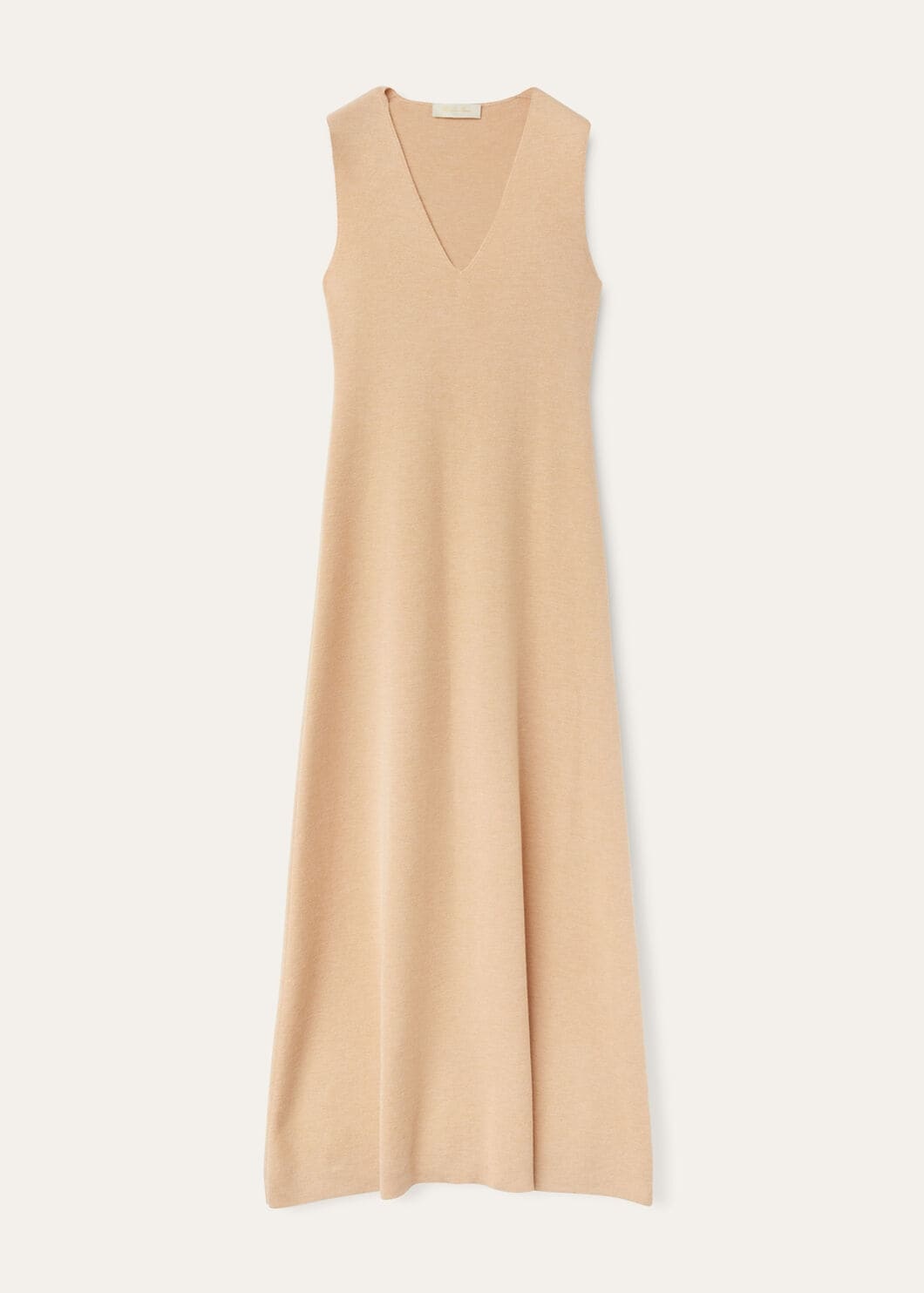 The Cocooning dress envelops you in that rarest of luxuries - the ease of being truly at peace. In a sumptuous cashmere-silk rib knit, this dress combines understated luxury with sophisticated femininity through a fitted bodice that elegantly flares out into an ankle-length skirt. The elasticated knit lends sublime ease for an air of sophisticated serenity. Product details Visible drop stitches Composition: 70% Cashmere, 30 Silk Model wears an IT 36 Model measures: height 5′ 10″/ 179cm, bust 30.3″/ 77cm, waist 23.2″/ 59cm, hips 34.3″/ 87cm. Product code: FAO6244