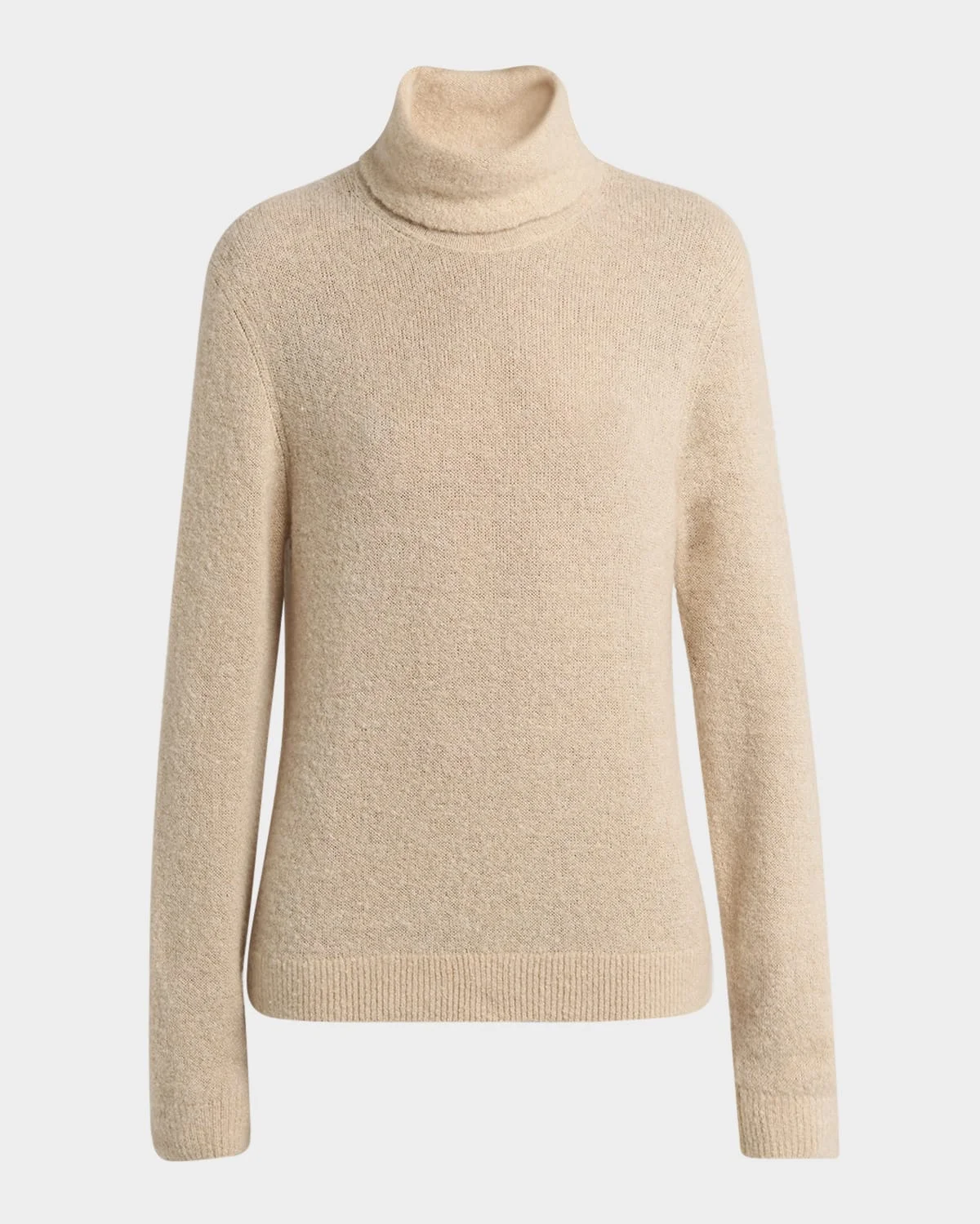 Loro Piana "Cocooning" sweater in 5gg silky boucle knit Turtleneck Long sleeves Relaxed fit Ribbed cuffs and hem Silk/cashmere Made in Italy