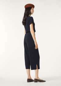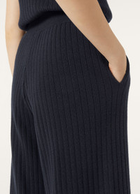 Gathered just once from each infant Hircus goat, Baby Cashmere embodies nature's fleeting perfection—a cloud-soft whisper of unparalleled luxury. Crafted from this special yarn, these pedal pushers have a flared hem and discreetly positioned side pockets, while the ribbed knit softly follows the contours of the body. These versatile pants are perfect for a wide range of occasions. Product details Mid-rise waist Wide leg Side straight pockets Flat ribbing Elasticated waistband Regular fit Unlined Gauge 12 Composition: 100% Baby Cashmere Made in Italy Product code: FAP2128