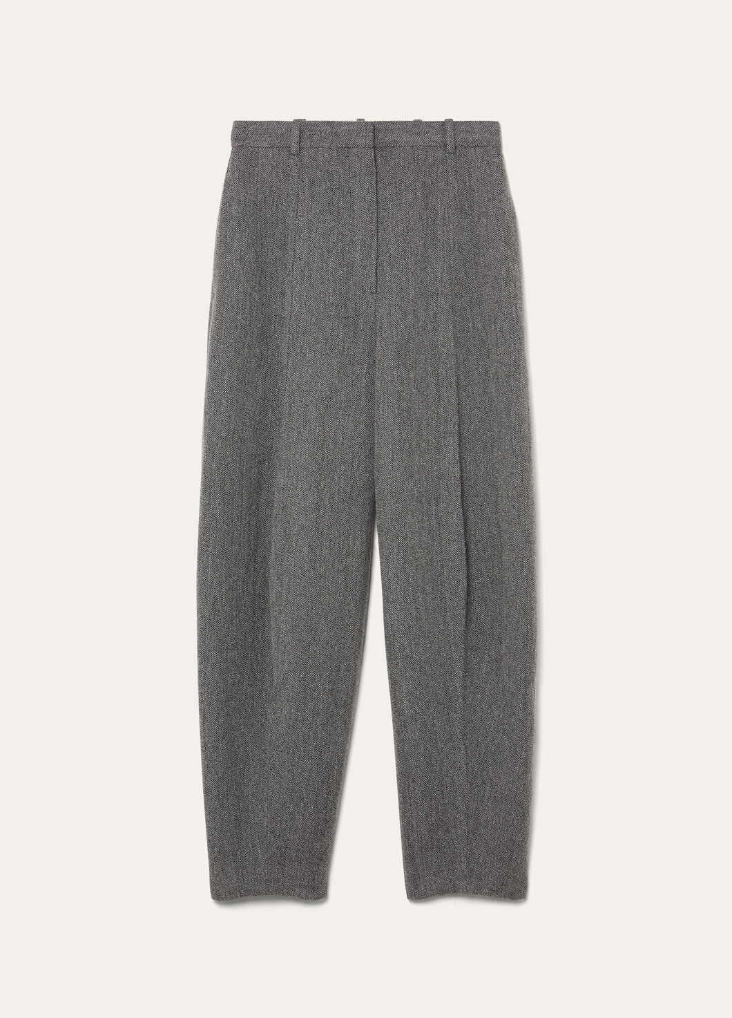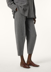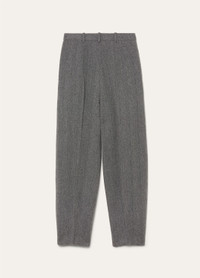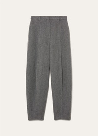 The Dan pants whisper tales of spring garden afternoons, where fabric flows like watercolor across the canvas of warming days. Rain System®-treated linen comes together with wool and cashmere for these balloon pants, where ribbed detailing orchestrates a graceful journey from voluminous hips to gathered ankles. Their all-weather appeal pairs beautifully with structured jackets and fluid knits. Product details High-rise waist Wide leg Side straight pockets Zip closure with button and metal hook Horn button Belt loops Regular fit Unlined Composition: 57% Linen, 38% Wool, 5% Cashmere Product code: FAP3693