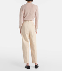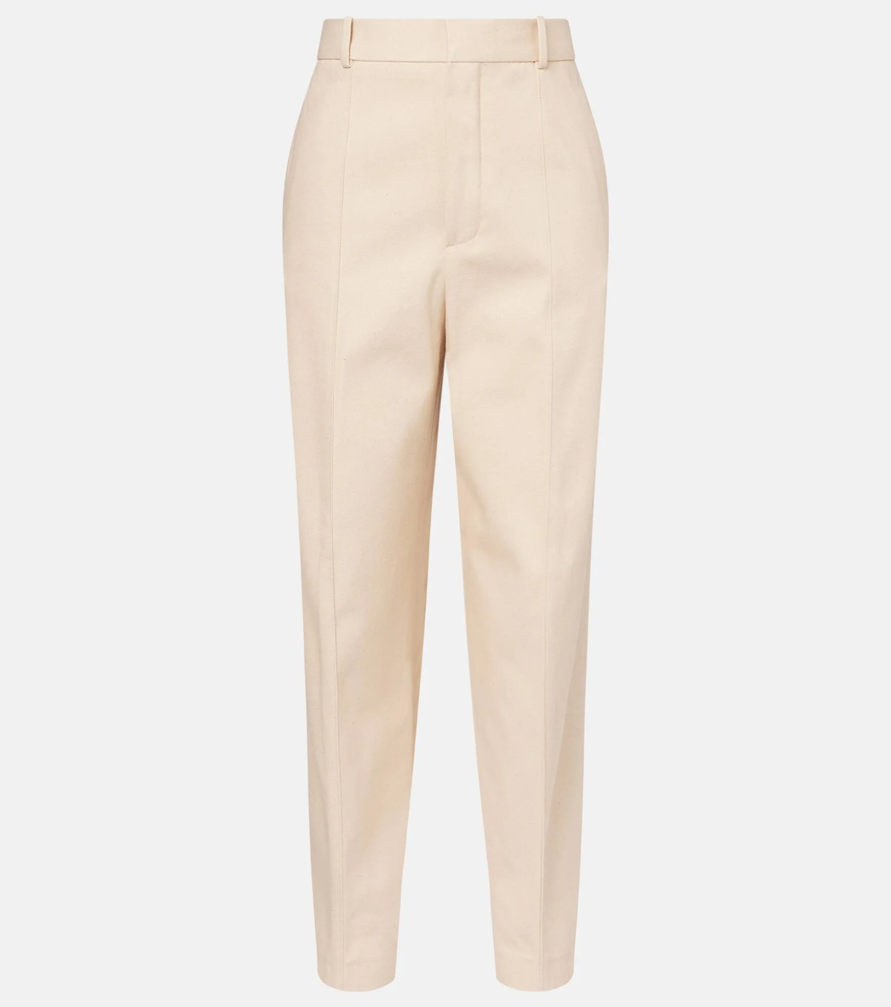 Product Details - Material: 100% cotton - Care instructions: dry clean - Made in Italy - Designer color name: Mild Sand - Item color: beige - Closure: zipper, hook fastening - Pockets: side slit pockets - Belt loops - Item number: P01011781 Size & Fit - True to size - Non-stretchy fabric - Tapered leg - High-waisted - The model seen in the picture is 178cm-5'10" and wearing a size IT 40