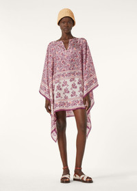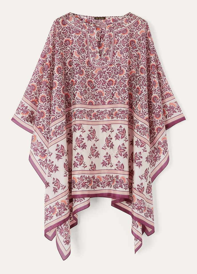 Refined in print and fabrication, the Daniela poncho exudes a sense of romantic elegance. Cast in a kaftan design, it is crafted from precious Habutai Silk for a luminous finish and elegant look. Marvels of the Venetian landscape are emblazoned across the gently cascading style, precision-paneled to create a rich design with a trompe-l’œil border along the neckline. Product details Riserva San Nicolo print Composition: 100% Silk Made in Italy Product code: FAP2569