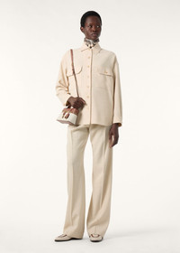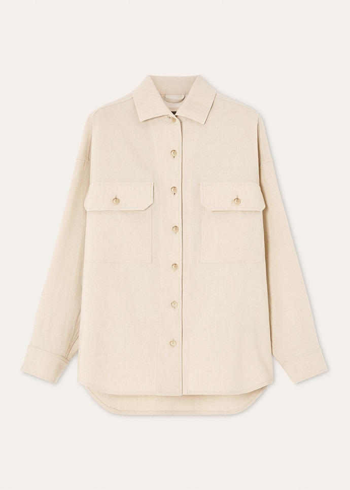 The Darby overshirt seamlessly melds tradition with contemporary functionality. Crafted from linen and wool crepe with a characterful basketweave, it is distinctive and versatile, imbued with a relaxed look that complements easy transitional silhouettes. Cut generously on the body, it is primed for wear on its own or beneath a coat. Product details Spread collar Flap pockets Single-button shirt cuffs Horn-button front fastening Rounded hem Unlined Oversized fit Composition: 52% Linen, 48% Virgin Wool Made in Italy Product code: FAQ1673