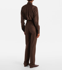 Product Details - Material: 100% virgin wool - Care instructions: dry clean - Made in Italy - Designer color name: Tawny Bark - Item color: brown - Pocket lining: 100% silk - Closure: zip, hook, and button fastening - Belt loops - Single pleat - High-rise - Pockets: side slit pockets, back pockets - Item number: P01069595 Size & Fit - Fits large to size - we recommend trying one size smaller - Non-stretchy fabric - Straight leg - The model seen in the picture is 178cm-5'10" and wearing a size IT 38